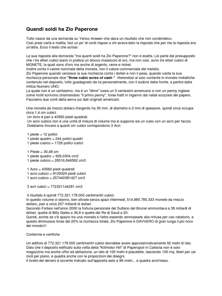 Quanti Soldi Ha Zio Paperone