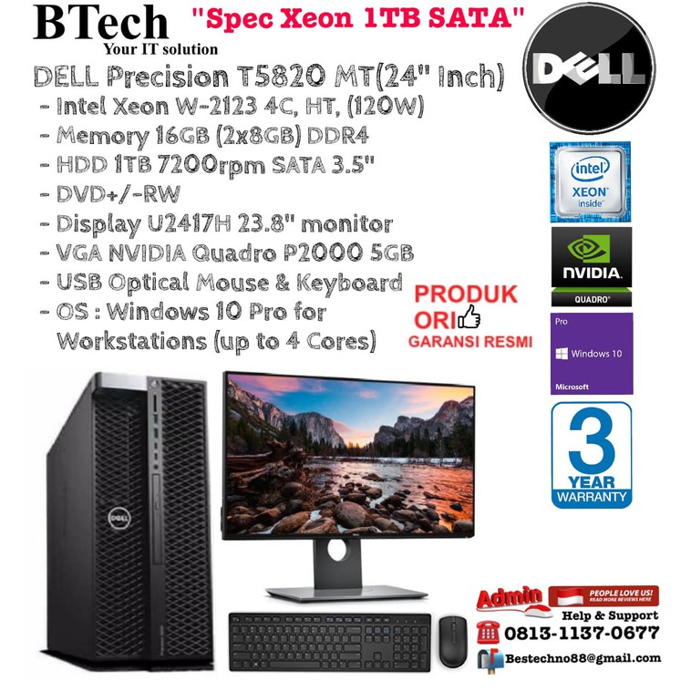 Jual Cpu Dell Precision T5820 Mt W 2125 16gb 2tb Vga 5gb Win10pro 3 Year Jakarta Pusat Intech Nusa Solusi Tokopedia