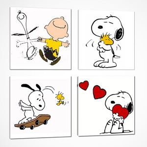 Quadri Dipinti A Mano In Tela Canvas Set 4 Pezzi 40x40 Arte Snoopy Cameretta Ebay