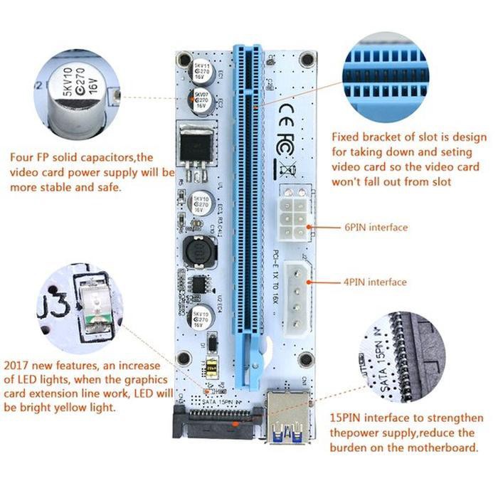 Pci E 16x To 1x Powered Riser Adapter Card W 50cm Usb 3 0 Extension Cable Ver008c Gpu Pcie Riser Extender Cable Ethereum Eth Bitcoin Btc Mining Price From Souq In Saudi