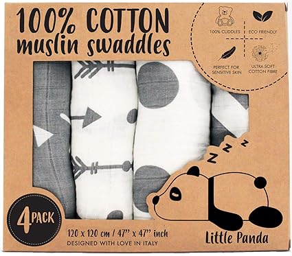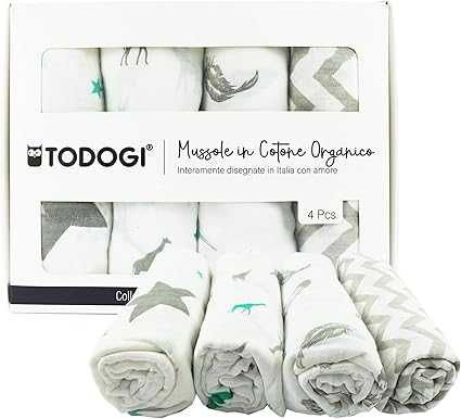 Todogi Mussole Neonato 100 Cotone Biologico Certificato Gots Set 4 Disegn 120 X 120 Ideali Come Copertina Bavaglino Lenzuolino Accappatoio Telo Per Fasciare Swaddle Regali Neonati Green Grey Amazon It Prima Infanzia