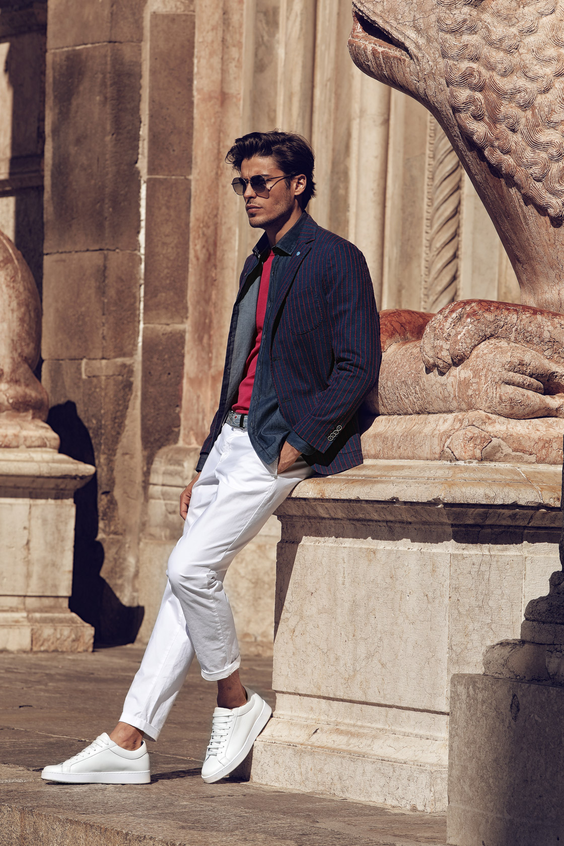Nella realtà odierna però comprare qualcosa non basta ma bisogna saperla abbinare ad altri capi di abbigliamento in modo impeccabile in modo tale da non risultare fuori moda o persone con poca cura dell estetica l obiettivo di questa guida è pertanto quello. 1 giacca a quadri con tee bianca. Bianco e blu si intonano tra di loro meglio di ogni altro colore. Con rever classico taschino per fazzoletto e asola per spilletta decorativa.