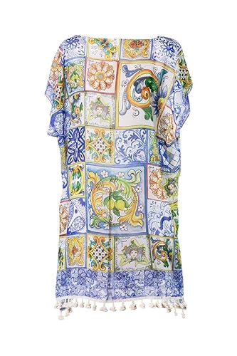 Kaftano Donna Piastrelle Caltagirone In Chiffon Di Seta Con Stampe Artistiche Che Nascono Da Quadri Taglia Unica Copricostume Abito Pareo Vestito Mare Lungo Leggero Estate Made In Italy Amazon It Handmade