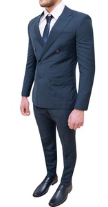 Abiti Abbigliamento Abito Completo Uomo Sartoriale Blu Quadri Vestito Elegante Cerimonia