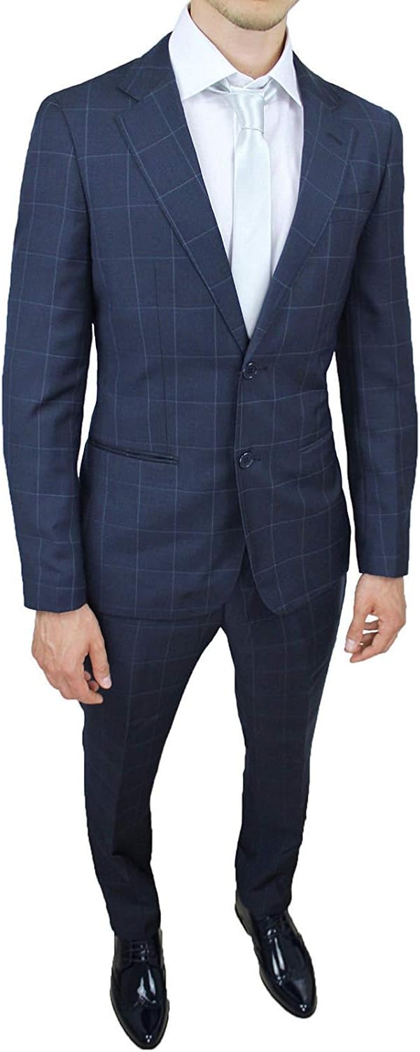 Abito Completo Uomo Sartoriale Blu Quadri Elegante Slim Fit Ebay