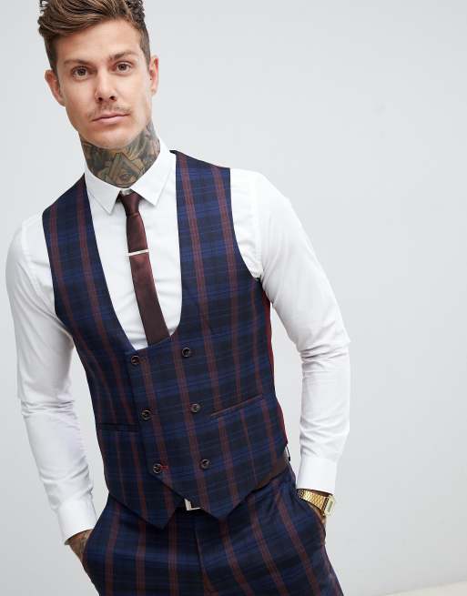 Harry Brown Gilet Da Abito Slim A Quadri Blu Navy E Bordeaux Asos
