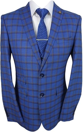 Hotk Uomo 3 Pezzi Abito A Quadri Slim Fit Blu Grigio Giacca Da Lavoro Formale Smoking Monopetto Amazon It Abbigliamento