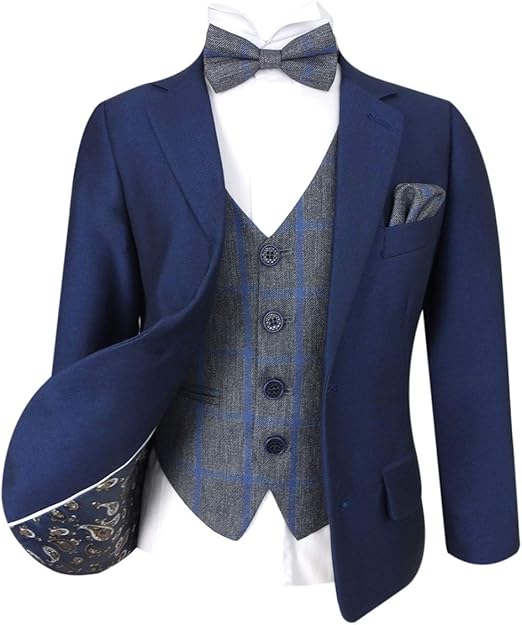 Abito Blu Marino Con Set Di Gilet A Quadri In Tweed Blu Grigio Per Bambini Amazon It Abbigliamento