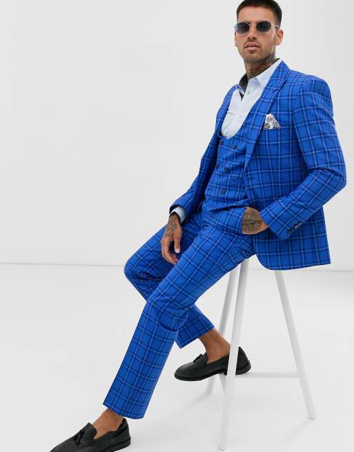 Harry Brown Wedding Giacca Da Abito Blu Acceso A Quadri Slim Asos