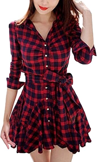 Allegra K Donna Abito Camicia A Quadri Manica Lunga Cintura Trapezio Vestito Natale Amazon It Abbigliamento