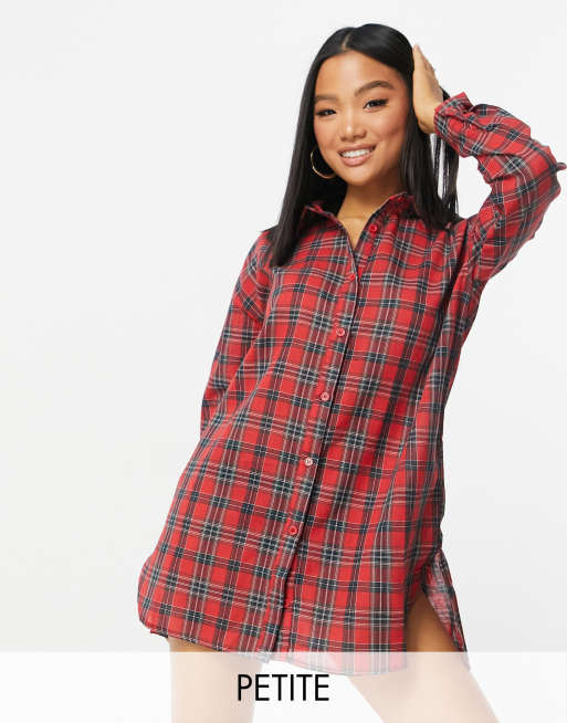 Missguided Petite Vestito Camicia Rosso A Quadri Evesham Nj