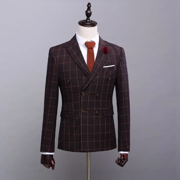 Pg Uomo Abito Da Uomo A Quadri A Tre Pezzi Abito Da Smoking A Due Bottoni