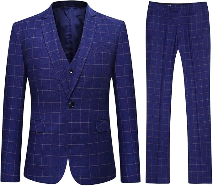 Pg Uomo Abito Da Uomo A Quadri 3 Pezzi Giacca Gilet Pantaloni Slim Fit Con Un Bottone Amazon It Abbigliamento