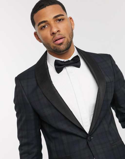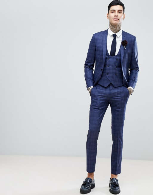 Moss London Giacca Da Abito Da Matrimonio Skinny Blu Navy A Quadri Asos