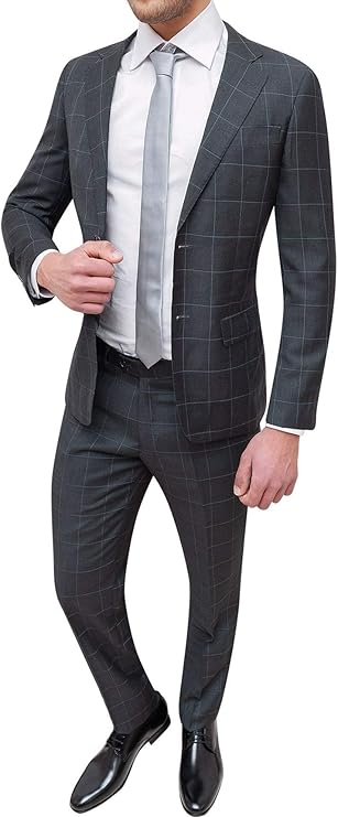 Abito Completo Uomo Diamond Sartoriale Grigio Scuro Quadri Elegante Da 42 A 58