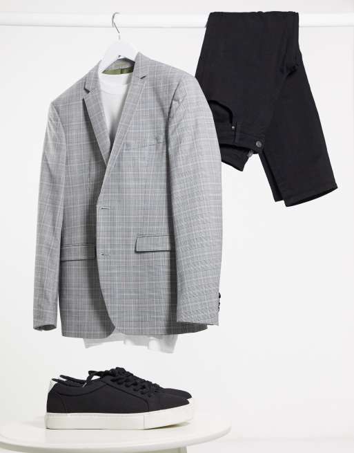 Esprit Giacca Da Abito Slim A Quadri Glenn Grigio Pop Asos