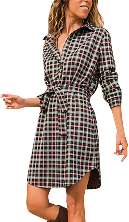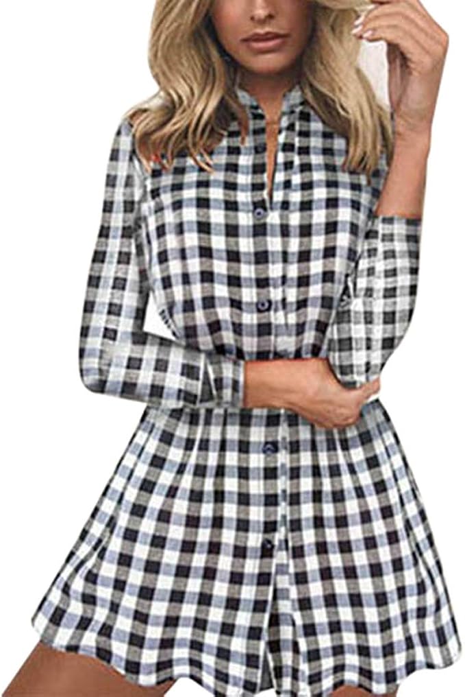 Donna Camicia Vestito Corto Sciolto Maniche Lunghe Estivi Eleganti A Quadri Abito Casual Vacanza Moda Vestiti Vestitini Chemisier Camicia Vestito Abiti Amazon It Abbigliamento
