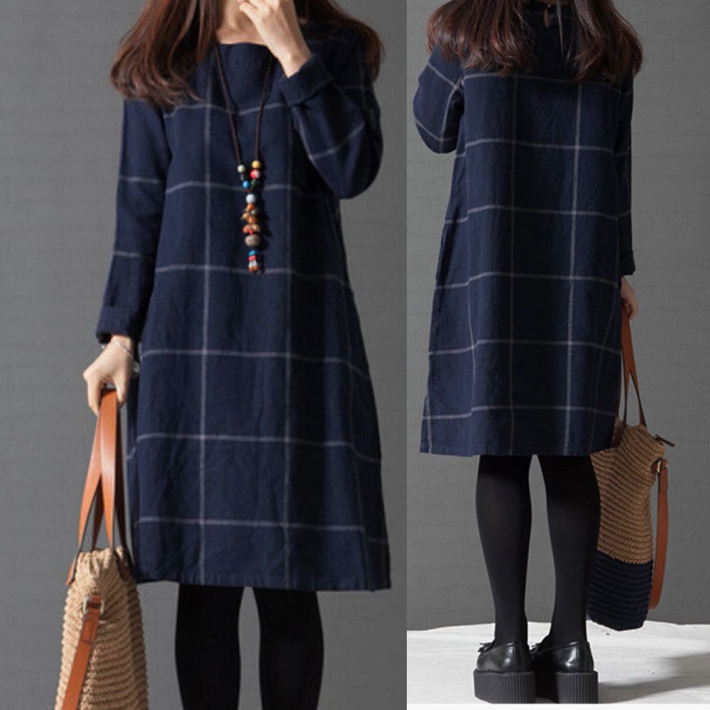 Acquista Abiti Donna Inverno Autunno Plus Size Abiti Donna Inverno Manica Lunga Scozzese A Quadri Abito Corto Abito Casual Allentato A 16 32 Dal Southd Dhgate Com