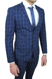 Abito Completo Uomo Sartoriale Blu Quadri Vestito Slim Fit Elegante Amazon It Abbigliamento
