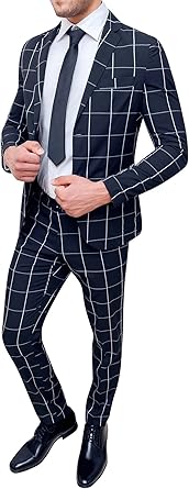 Abito Completo Uomo Sartoriale Blu Fantasia Quadri Slim Fit Elegante Amazon It Abbigliamento