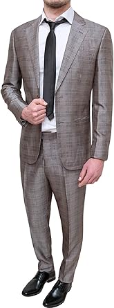Fb Class Elegante Abito Uomo Sartoriale Marrone Grigio Quadri Completo Cerimonia 46 Amazon It Abbigliamento