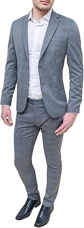 Fb Class Elegante Abito Uomo Sartoriale Grigio Quadri Slim Fit Vestito Completo Cerimonia 48 Amazon It Abbigliamento