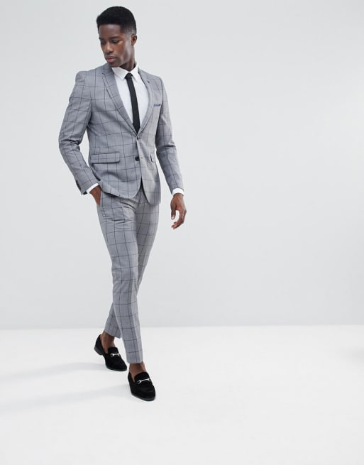 Selected Homme Giacca Da Abito Super Skinny A Quadri Grigio Asos Grigio Poliestere Stileo It