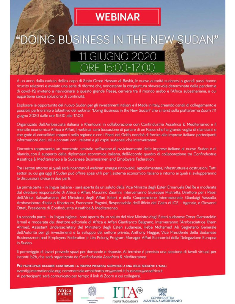 Italy In Sudan On Twitter Esplorare Le Opportunita Del Nuovo Sudan Per Gli Investimenti Italiani E Il Made In Italy E L Obiettivo Del Webinar Doing Business In The New Sudan In