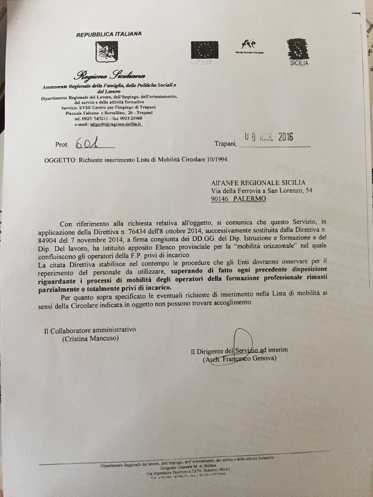 Formazione Professionale Sicilia Diffida Per L Inserimento Nelle Liste Di Mobilita E Ricorso Al Tar Per L Impugnativa Del D A N 2037 15 Avvocato Leone Fell