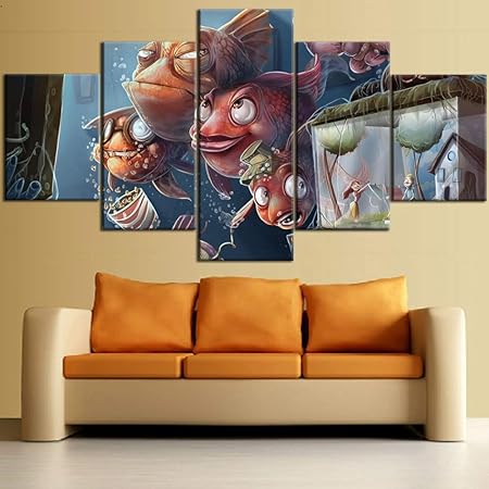 Homopk Quadro Su Tela 5 Pezzi Acquario Astratto Di Pesci 5 Dipinti Stampa Su Tela Home Decor Pittura Soggiorno Camera Da Letto Fondo Parete Carta Da Parati Arte Poster Regalo B Senza Telaio