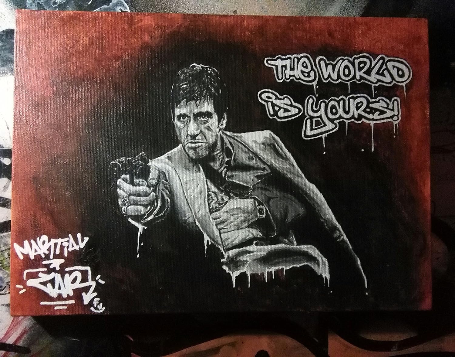 Amazon Com Tony Montana Al Pacino Dal Film Scarface Quadro Su Tela In Acrilico Scarface Al Pacino The World Is Yours Handmade