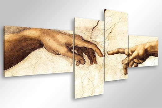 Lcgbw Creazione Di Adamo Mano Del Dio Religione Quadro Su Tela Famosa Copia Di Michelangelo Cappella Sistina Affreschi Wall Art Tela Cornice 50x100cm Amazon It Fai Da Te