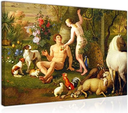 Topquadro Quadro Stampa Su Tela 70x50cm Adamo Ed Eva Dipinto Giardino Eden Paradiso Animali Decorazioni Interni Amazon It Casa E Cucina