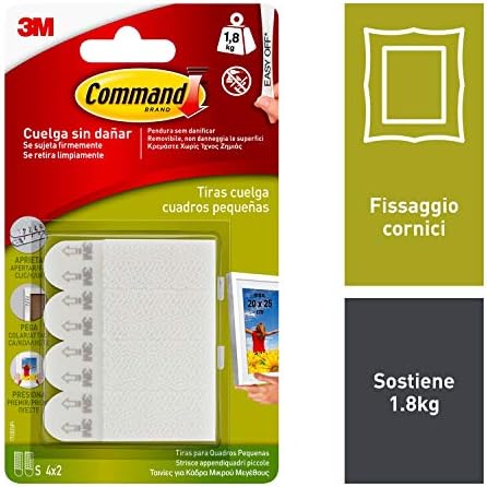 Command Strisce Appendiquadri Piccole Set Di 4 Strisce Adesive Rimovibili Per Appendere Quadri Cornici Poster Foto Su Muro E Pareti Senza Chiodi Peso Fino A 1 8 Kg Dimensione 20x25 Cm Amazon It Fai