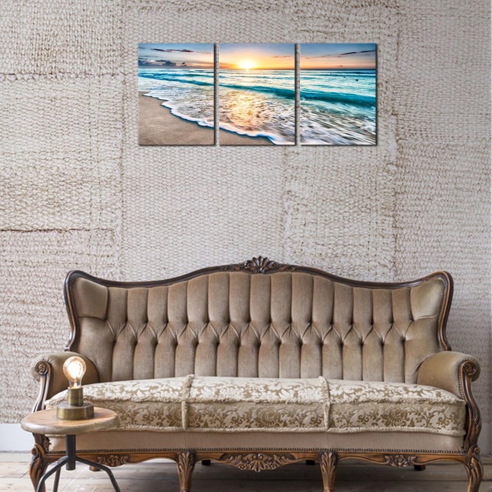 Wieco Art 3 Pannelli Blu Spiaggia Alba Bianco Onda Quadri Su Tela Arte Moderna Tesa E Incorniciata Paesaggio Marino Paesaggio Marino Per Casa Ufficio Decorazioni Casa E Cucina Arte