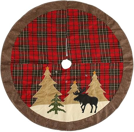Lino Scozzese Rosso E Nero Gonna Per Albero Di Natale In Tela Luter 48 Pollici Gonna Per Albero Di Natale Bordo Scozzese A Quadri Rotondo Grande Per Decorazioni Natalizie Gonne Per Alberi