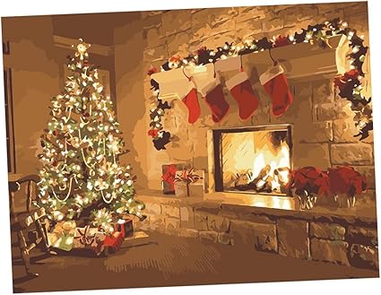 Magideal Stampe Quadri Su Tela Fai Da Te Numeri Quadri Senza Cornice Con Pennello Spazzola Camino Dell Albero Di Natale Amazon It Casa E Cucina