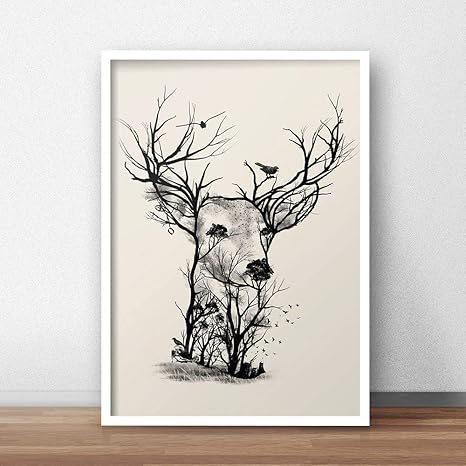 Quadro Decorativo Alce De Arvores 20x30cm Branco Amazon Com Br