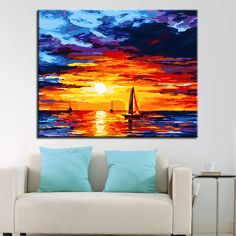 Sunset Sea Sailing Oil Painting By Numbers Diy Digital Pictures Coloring By Number Canvas Framework Quadri Da Parete Moderni Painting Calligraphy Aliexpress