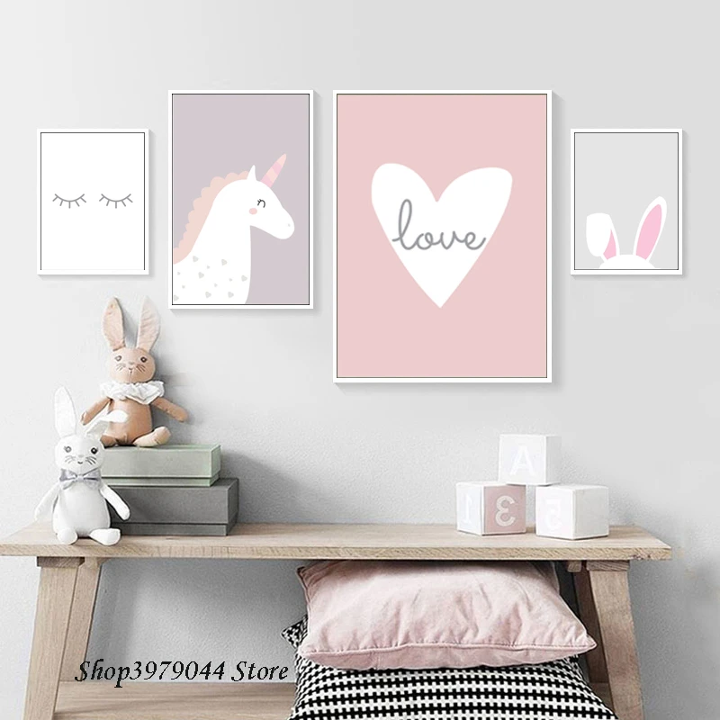 Quadro Gambar Kartun Gadis Poster Dinding Nordic Pink Poster Dan Cetakan Bunga Bunga Dinding Seni Lukisan Kanvas Bayi Dekorasi Kamar Quadri Unframed Painting Calligraphy Aliexpress