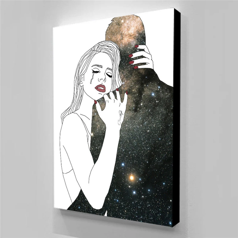 Wall Art Posters Lady Hug Galaxy Canvas Painting Poster Decorative Modern Art Canvas Prints Abstract Painting Quadri Tuinposter Painting Calligraphy Aliexpress