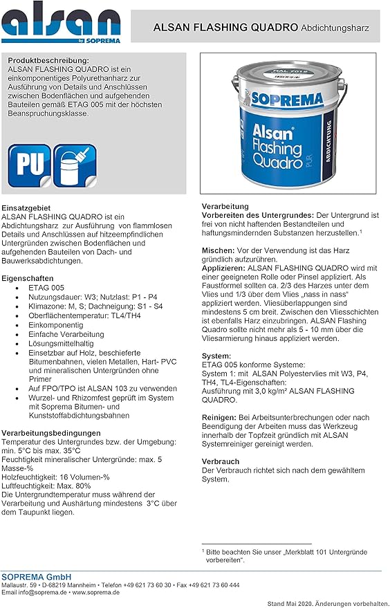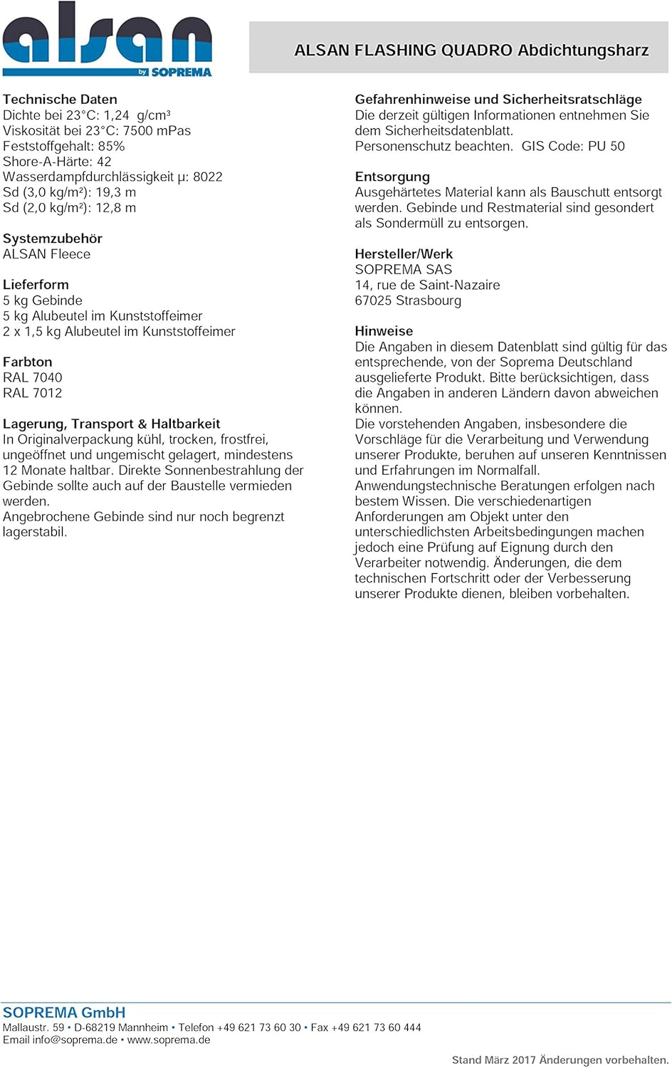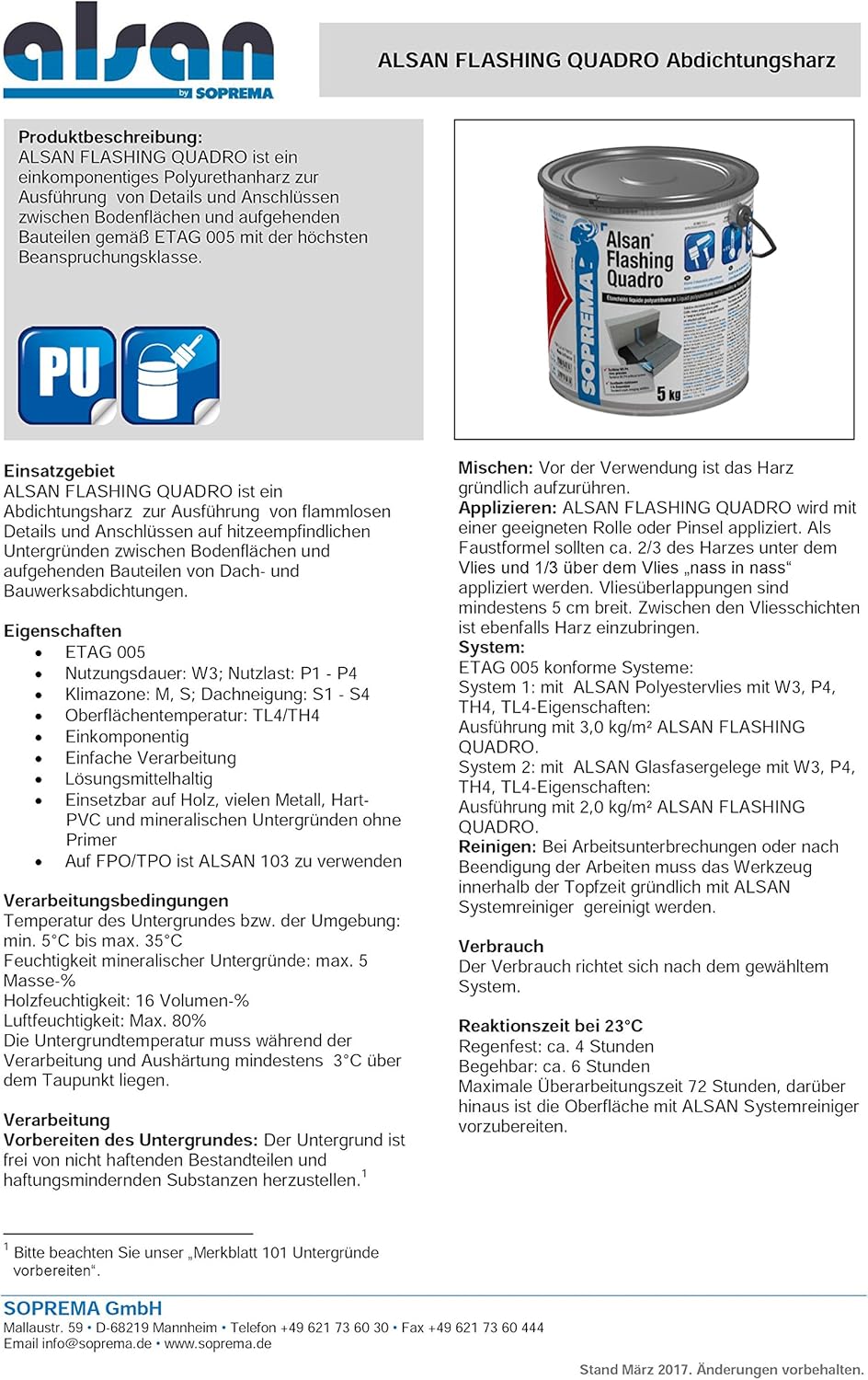 Alsan Flashing Quadro 5 0kg Gebinde Ral 7040 Fenstergrau Einkomponentiger Polyurethan Flussigkunststoff Zur Absolut Sicheren Abdichtung Und Herstellung Von Details Und Anschlussen Im Flachdach Amazon De Baumarkt
