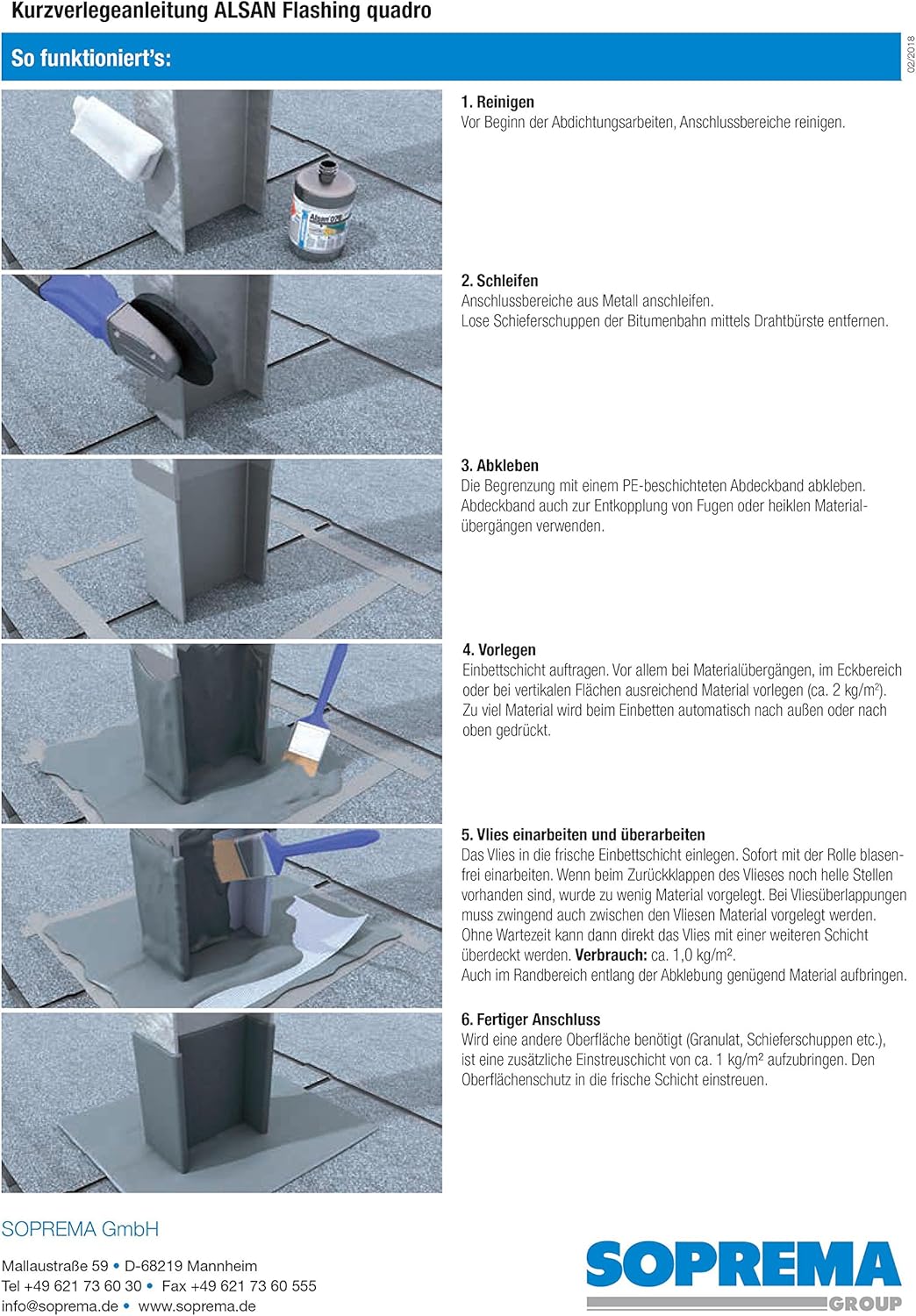 Alsan Flashing Quadro Profi Pack Farbe Ral 7040 Fenstergrau Komplettset 5 0 Kg Flussigkunststoff 1 Rolle Alsan Vlies 1 Paar Handschuhe 1 Ruhrholz 1 Farbwalze Verlegeanleitung Baumarkt Farbauftrag