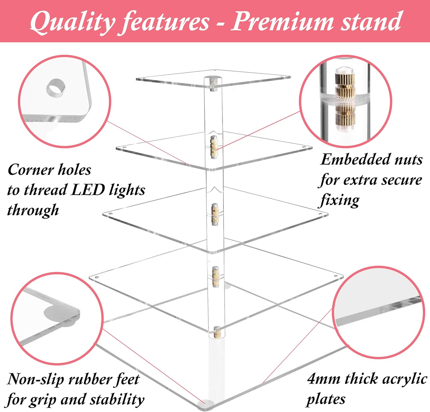 Hexnub 3 Piani In Acrilico Stand Cupcake Illuminato Torte E Dessert Forma Quadrata Display Alzata Per Dolci Con Luci Led Per Matrimoni Compleanni Baby Shower Merenda Multicolore Alzate Per Dolci E Frutta