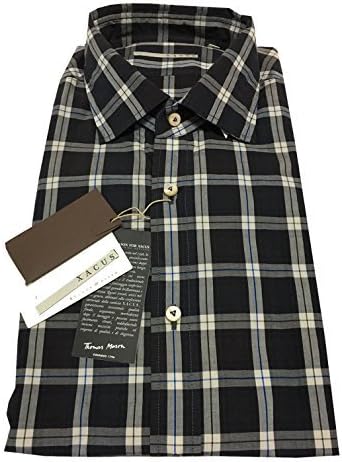 Xacus Camicia Uomo Quadri Moro Nero 100 Cotone Tessuto Thomas Mason Slim Amazon It Abbigliamento