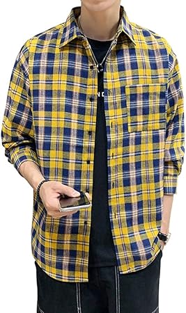 Mikeson Camicia A Quadri Da Uomo A Maniche Lunghe Da Uomo A Maniche Lunghe Autunno E Inverno Camicia Da Uomo Nuova Giallo Xl Amazon It Sport E Tempo Libero