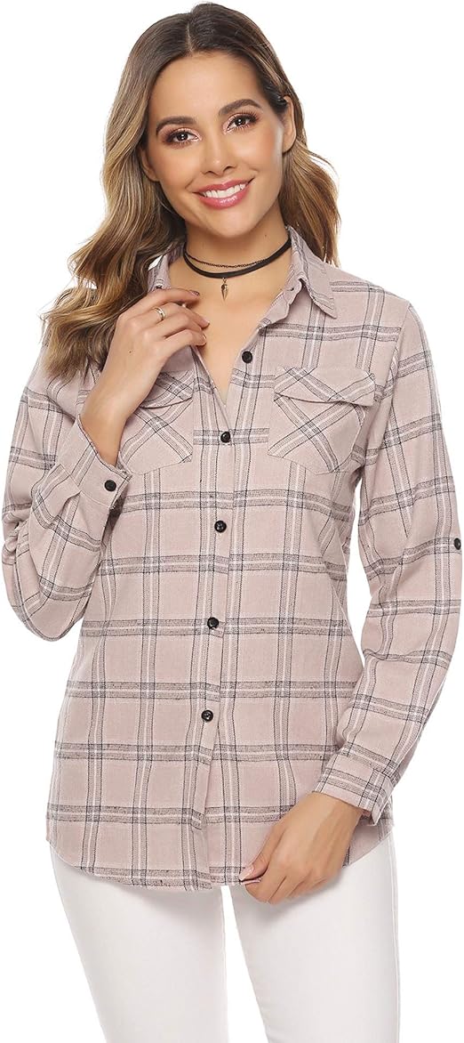 Abollria Camicia Quadri Donna Di Flanella A Maniche Lunghe Bluse Casual Camicetta A Quadretti Classica Con Tasche Amazon It Abbigliamento