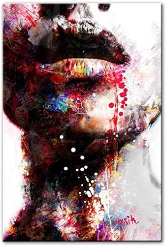 Woplmh Volto Di Donna Colorato Quadri Astratti Su Tela Poster E Stampe Su Tela Arte Dei Graffiti Labbra Sexy Immagini Decorazioni Per La Casa 40x40cm Senza Cornice Amazon It Casa E Cucina