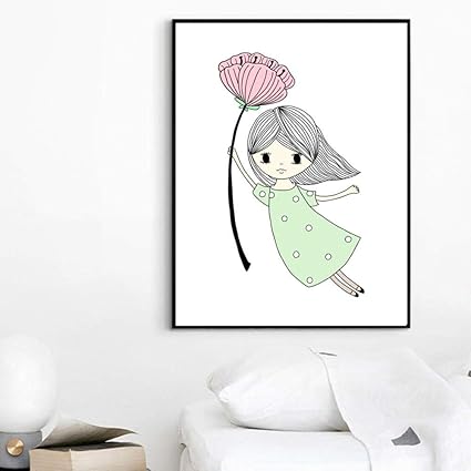 Fiori Carini Ragazza Quadri Su Tela Quadri Camera Da Letto Nordica Casa Cameretta Poster Art Deco 40x50cm No Framed Amazon It Fai Da Te