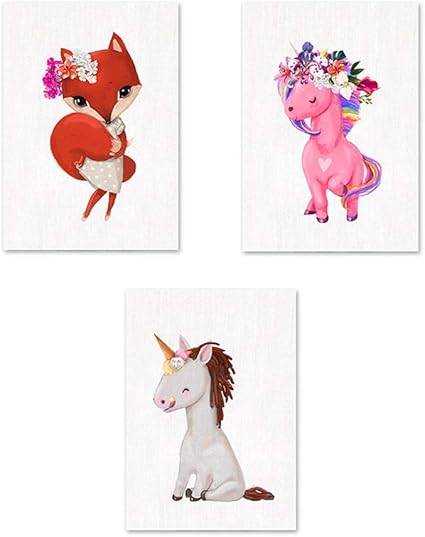 Lorcoo Set Di 3 Poster Per Cameretta Dei Bambini Motivo Animali Dina4 Senza Cornice Decorazione Per Bambine E Bambini Amazon It Amazon It